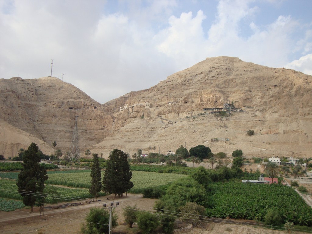 Tourists flock to the place along the shore of the Jordan River (above) where Jesus is believed to have been baptized. We saw a number of people getting baptized at the time of our visit. In the photo below, one can see in the distance a monastery built where Jesus is believed to have been tempted in the wilderness. (The monastery is nestled about halfway up the hill toward the right in the photo.)