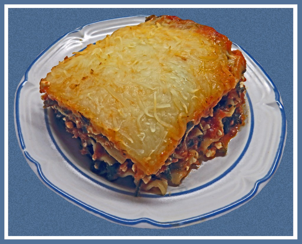 I’ve cut a substantial portion of the fat content by using fat-free cottage cheese and low-fat part-skim mozzarella cheese. I’ve reduced the salt content by using low-sodium marinara sauce and no-salt-added tomato paste, added fiber by using whole-grain noodles and even sneaked in an extra dose of veggies by doubling the spinach.