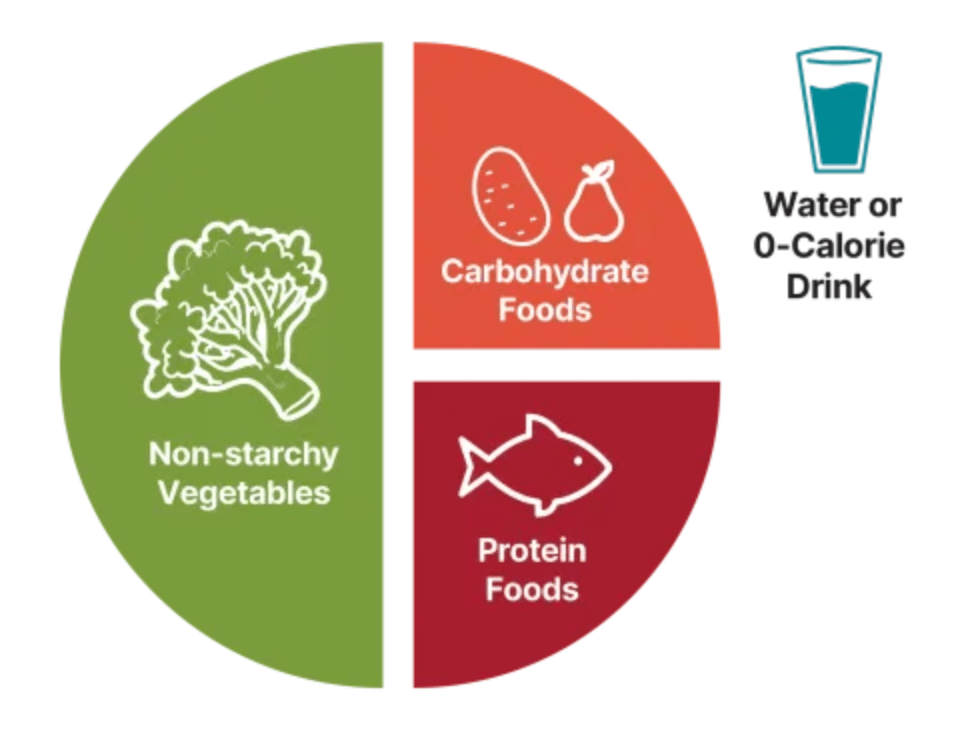 - Add portion control. The “plate method” suggested by the American Diabetes Association is attractive because there’s no weighing, measuring or calorie-counting. (Note: You don’t have to be diabetic to use it.) The plate method involves filling half a nine-inch plate with non-starchy vegetables such as lettuce, broccoli or carrots, one-quarter of the plate with whole grains, fruit or starchy vegetables such as corn or potatoes, and one-quarter of the plate with a protein source. For detailed information on the plate method, link HERE.