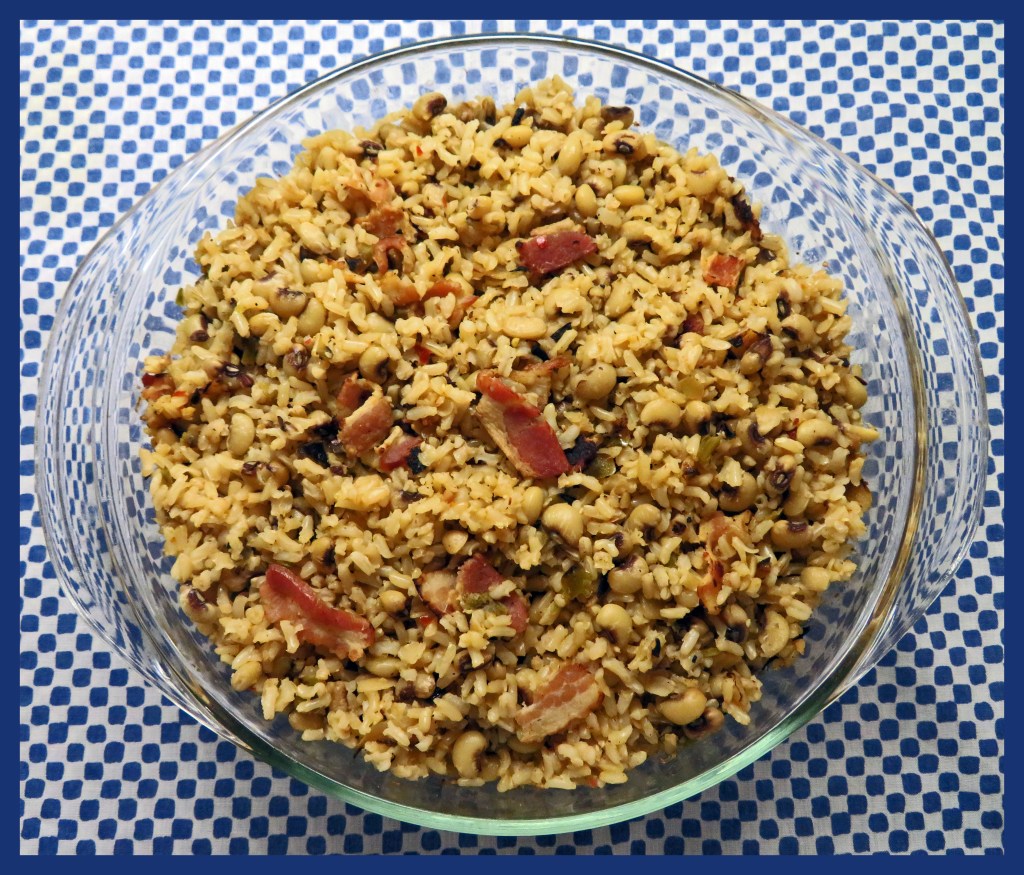 Unfortunately, this year we’ll be celebrating with just the two of us because of the pandemic. But our friends will be with us in spirit, and the leftover hoppin’ john freezes very well.