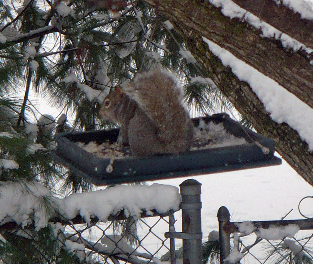 Squirrels helping themselves to some birdseed. (Who decreed it’s just for birds??)